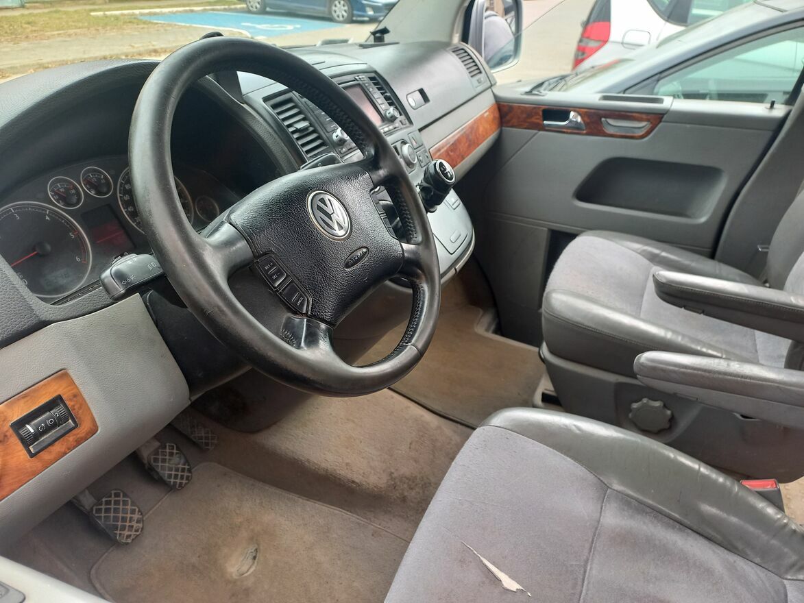 Volkswagen Multivan 2.5 tdi 6 biegow 96kw 2004r Highline 440.000km ostatnie 7 lat w jednych rekachbogato wyposażony,jednak nadgryziony zębem czasu, z istotniejszych serwisów niedawno regenerowano 5 wtryskiwaczy,w cenie z autem drugi komplet felg stalowych z oponami zimowymi,obecnie felgi aluminiowe z oponami na lato przeglad swiezo zrobiony do marca 2027,oc w calosci zaplacone do grudnia
